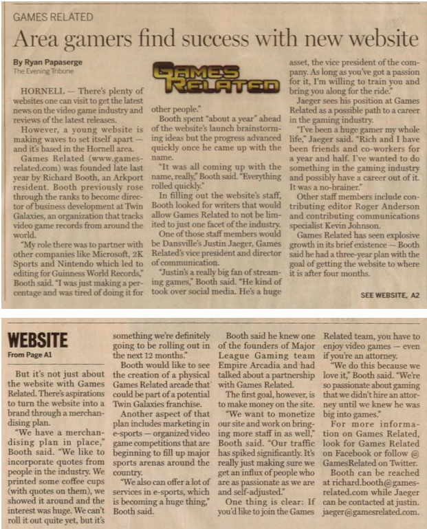 When Justin and I started GamesRelated in 2014, we had a goal of setting ourselves apart and paving our own way into the gaming industry. Coming from a small town, there weren’t any opportunities at that time, so finding one ourselves was the only way. Because we were doing something different, we were featured in our local newspapers (they were still a big deal then). We hope you enjoy our story and our vision.